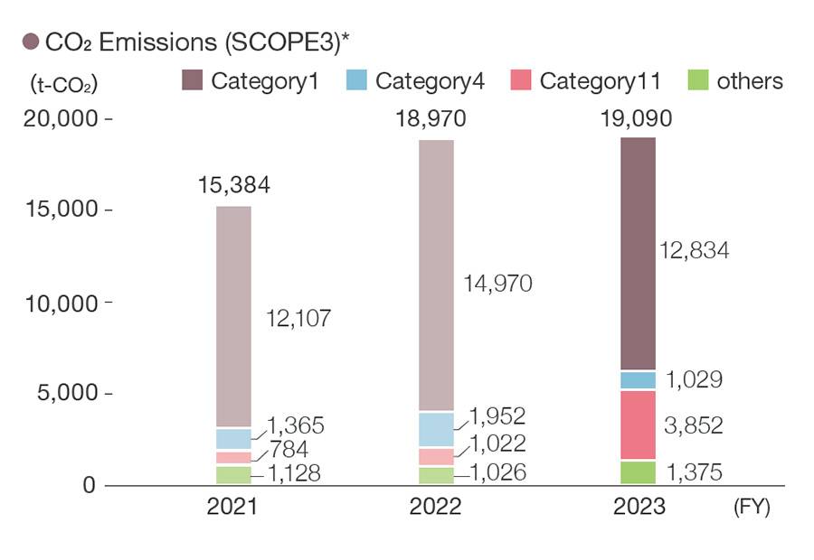 The DMC Group calculates greenhouse gas emissions in all its corporate activities, from upstream to downstream, based on the GHG Protocol,an international standard for companies to calculate and report greenhouse gas emissions throughout their supply chains. In FY2023, Category 1 emissions, which account for the highest proportion of CO² emissions, decreased by 14% compared to the previous year. Although the merger led to an increase in the procurement of unit products, the reduction in bulk purchases due to changes in the external environment, and a decrease in the procurement of key raw materials for touchscreens due to lower production volumes are largely reflected. Clarifying emissions throughout our supply chain and identifying the potential for reducing emissions will lead to CO² reduction and contribute to the fight against global warming.