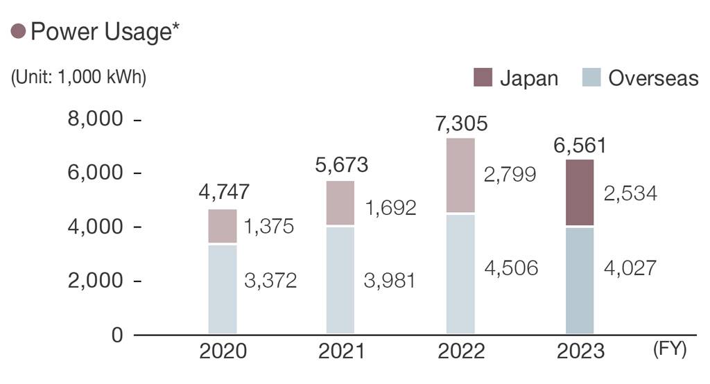 - * Scope is production sites (100% coverage). Including results from the Iwaki Factory from FY2021 and the Izumi Factory from FY2023