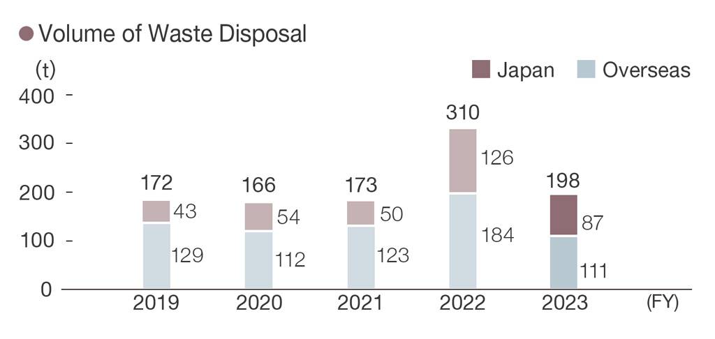 In addition, our domestic and Indonesian factories carry out appropriate wastewater treatment in accordance with laws and regulations, conduct regular biochemical oxygen demand (BOD) inspections, and submit test result certificates to public institutions to confirm that there are no problems.