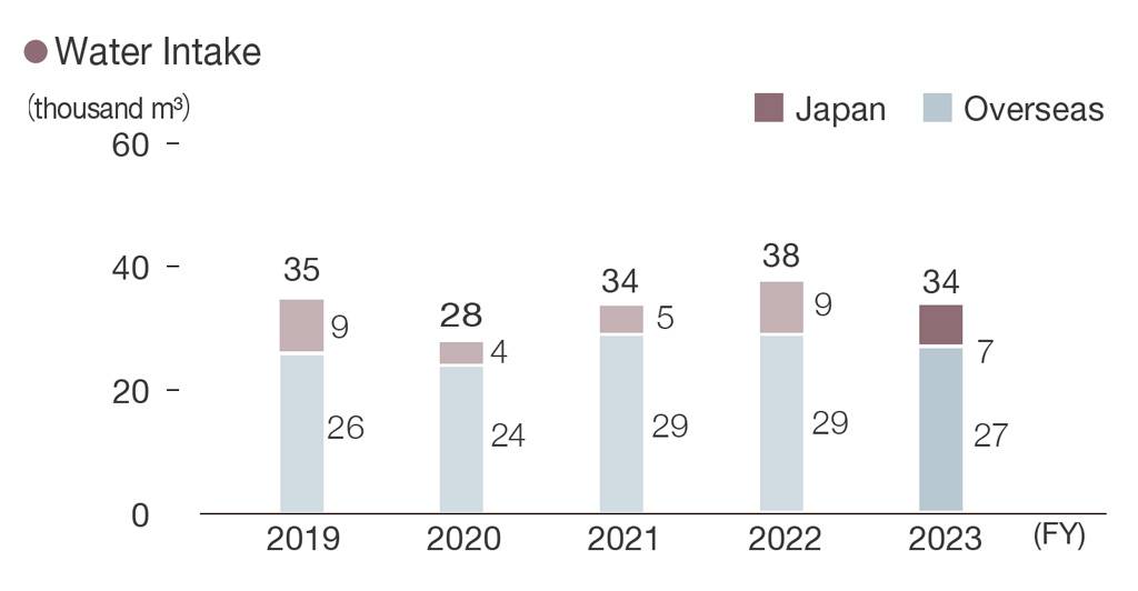 Infrastructure improvement has been delayed due to an increase in population and demand for water resources that have accompanied economic growth. This has accelerated water shortages and pollution, which has had a significant impact on our lives and environment. The DMC Group considers the effective use of water in manufacturing and the conservation of water resources.