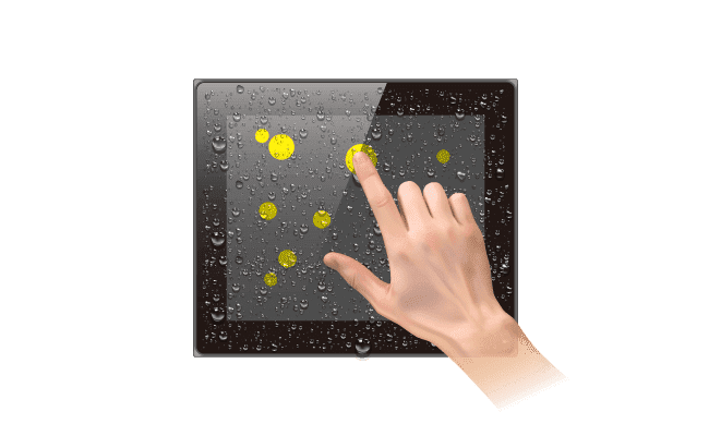タッチパネル上の水を検出して、誤動作を防ぎます。