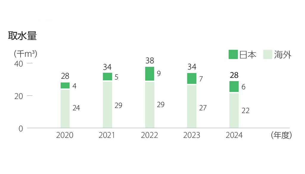 経済成長による水資源の需要増や人口増加に伴うインフラ整備が遅れていることなどにより、地域によっては水不足が深刻化し、工業排水などによる水の汚染が、人々の生活や環境に影響を及ぼしています。これらを踏まえ、当社グループは、生産活動における効果的な水の利用と水資源の保全に努めます。